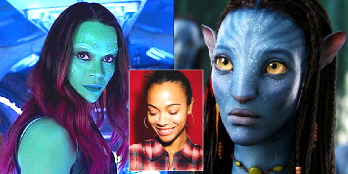 조 샐다나는 '아바타'에서 파란색의 특수 분장을 하고 나비족 여전사 네이티리를 완벽하게 묘사했다.