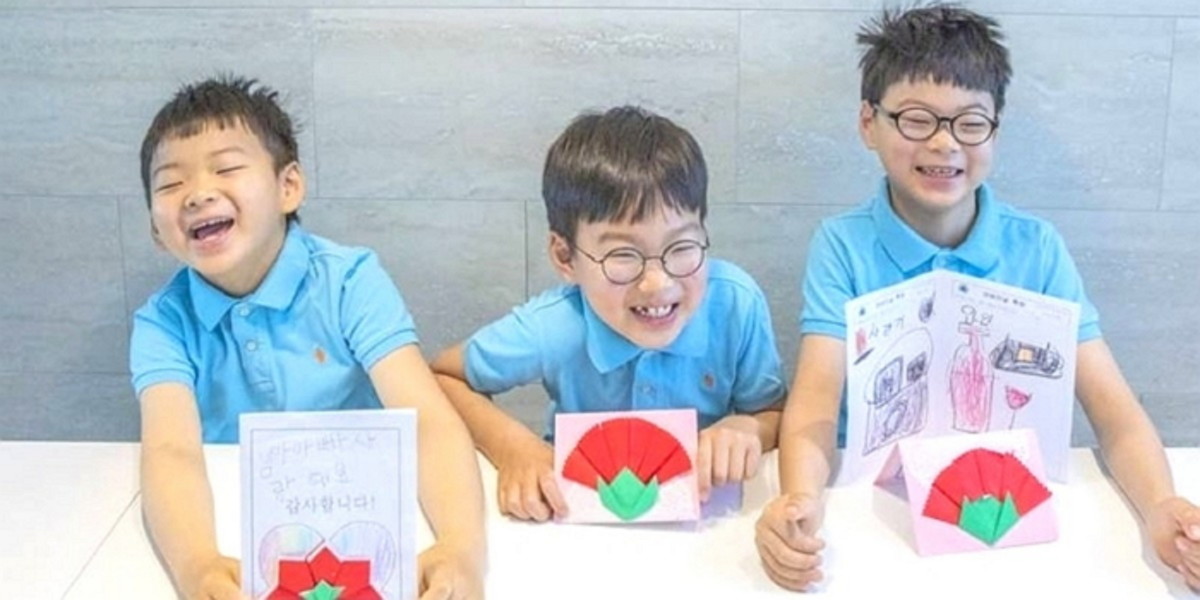 공개된 사진에서 대한, 민국, 만세는 어버이날을 기념해 직접 만든 편지와 카네이션을 들고 있다.