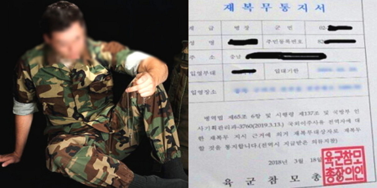 결국 A씨는 재입대 영장을 받은 뒤 올해 3월 29일 재입대를 했다.