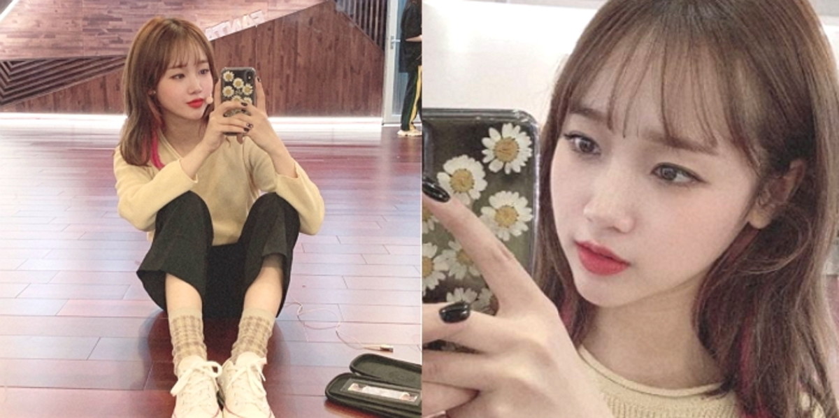 밝은 핑크색으로 염색한 안쪽 머리는 깜찍한 비주얼을 자랑하는 최유정과 찰떡궁합이다.