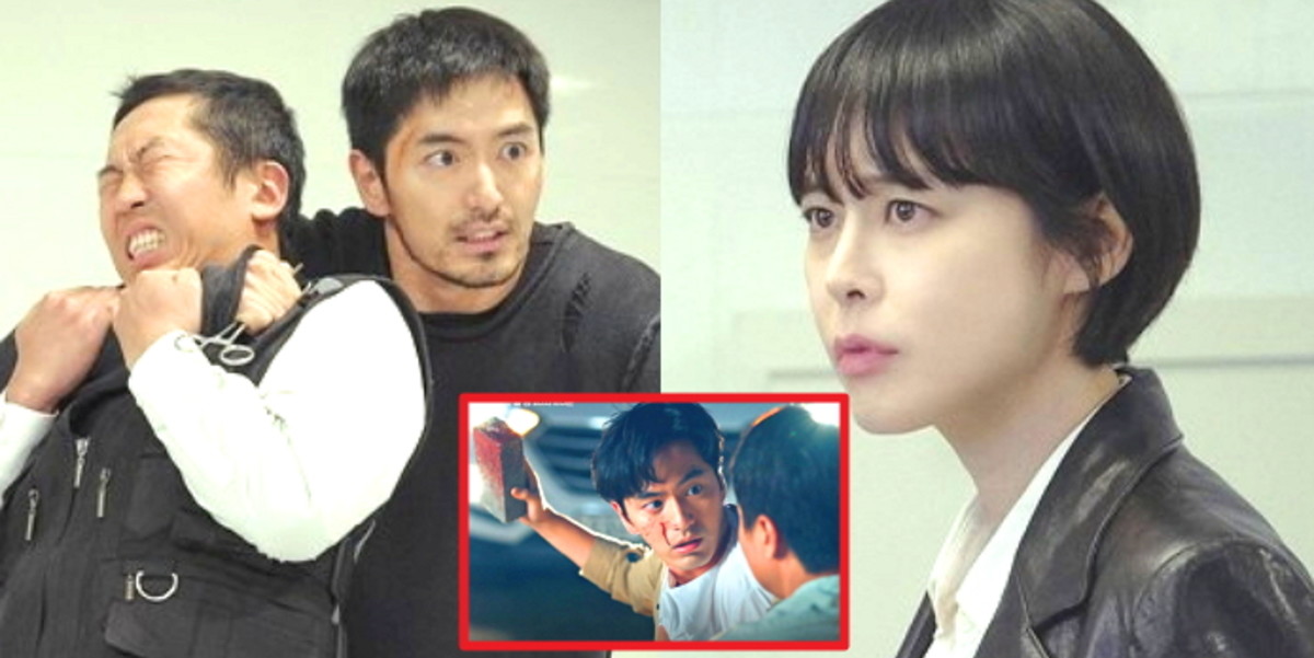 도강우는 한쪽 손목이 침대 난간에 수갑으로 고정된 채 한 일본 형사를 위협하고 있었고, 다른 일본 형사들은 도강우를 향해 일제히 총을 겨누고 있었다.