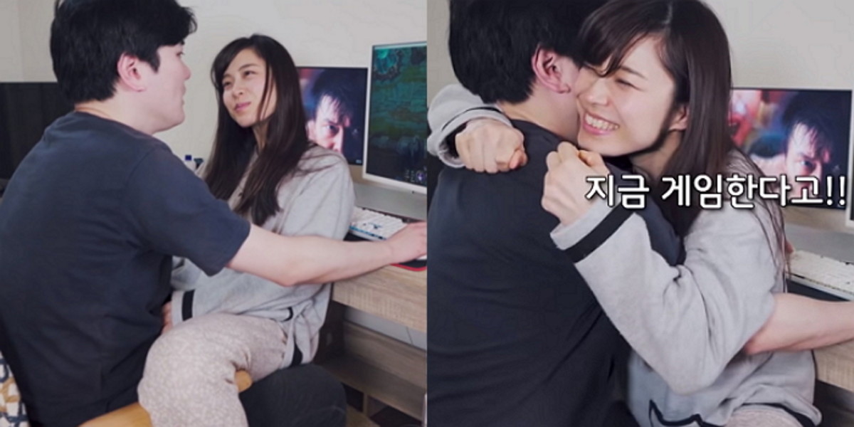 아무리 게임이 좋아도 눈앞에 사랑스러운 아내가 이처럼 귀여운 애교로 방해한다면 누구든 게임에 집중하기란 힘들지 않을까.