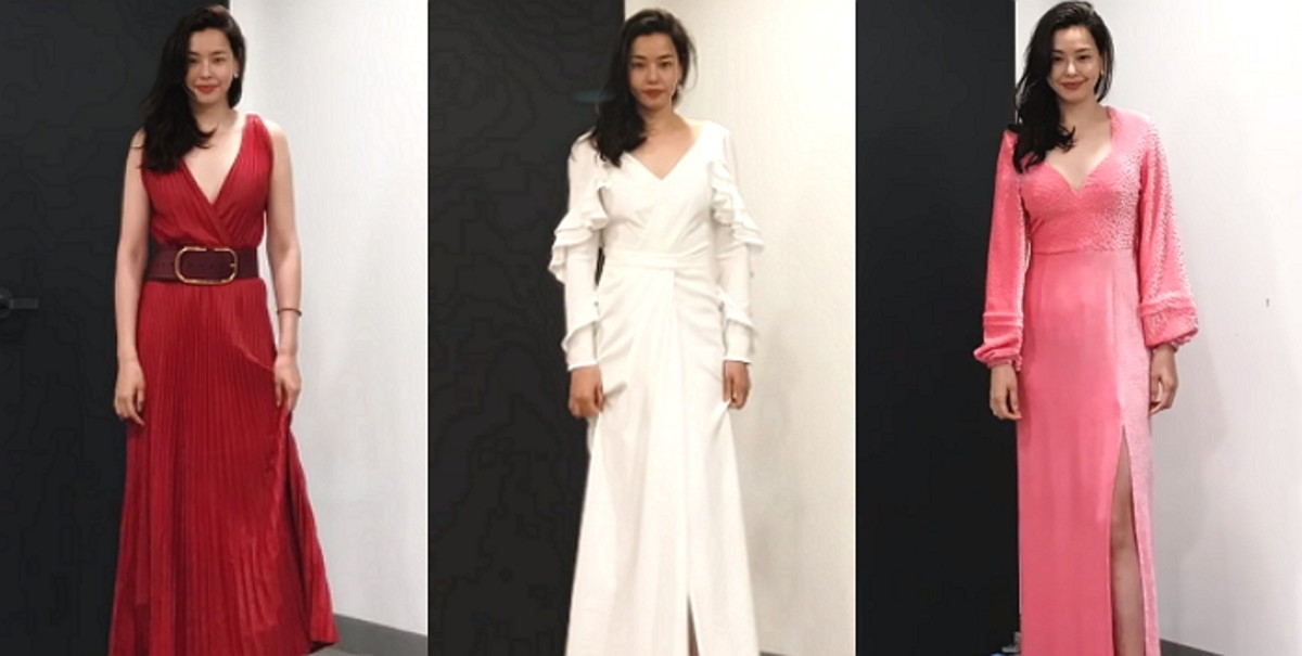이하늬는 백상예술대상 시상식을 위해 프릴이 아름다운 흰색 , 카리스마 넘치는 버건디, 핫한 네온 핑크, 얼굴이 화사해 보이는 연핑크, 아찔한 V넥의 벨벳 핑크까지 총 5개의 드레스를 피팅했다.