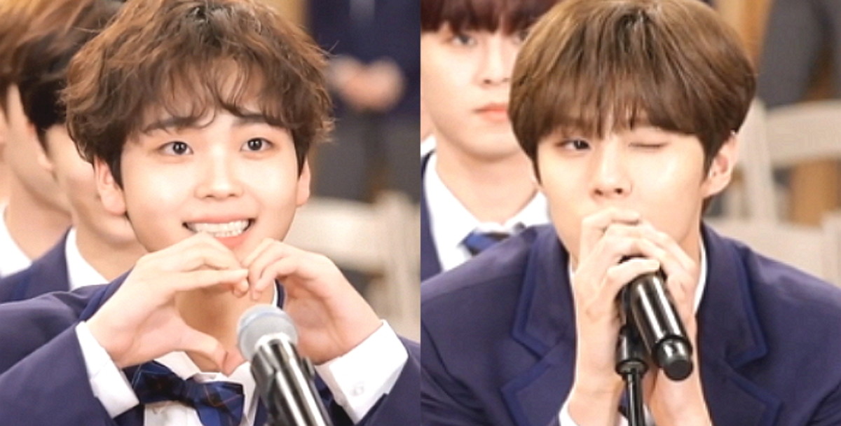 송형준은 양손으로 각각 작은 하트를 만들어 보이는가 하면, 최근 아이돌 사이에서 유행하는 일명 '깨물하트'를 선보였다.