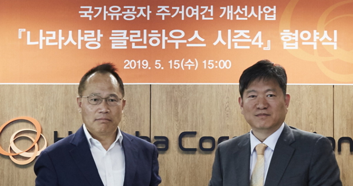 지난 15일 한화빌딩 본사에서 열린 협약식에는 ㈜한화 옥경석 대표이사와 오진영 서울지방보훈청장 등이 참석했으며 올해 5월부터 이듬해 말까지 총 20가구의 주거환경을 개선하기로 했다.