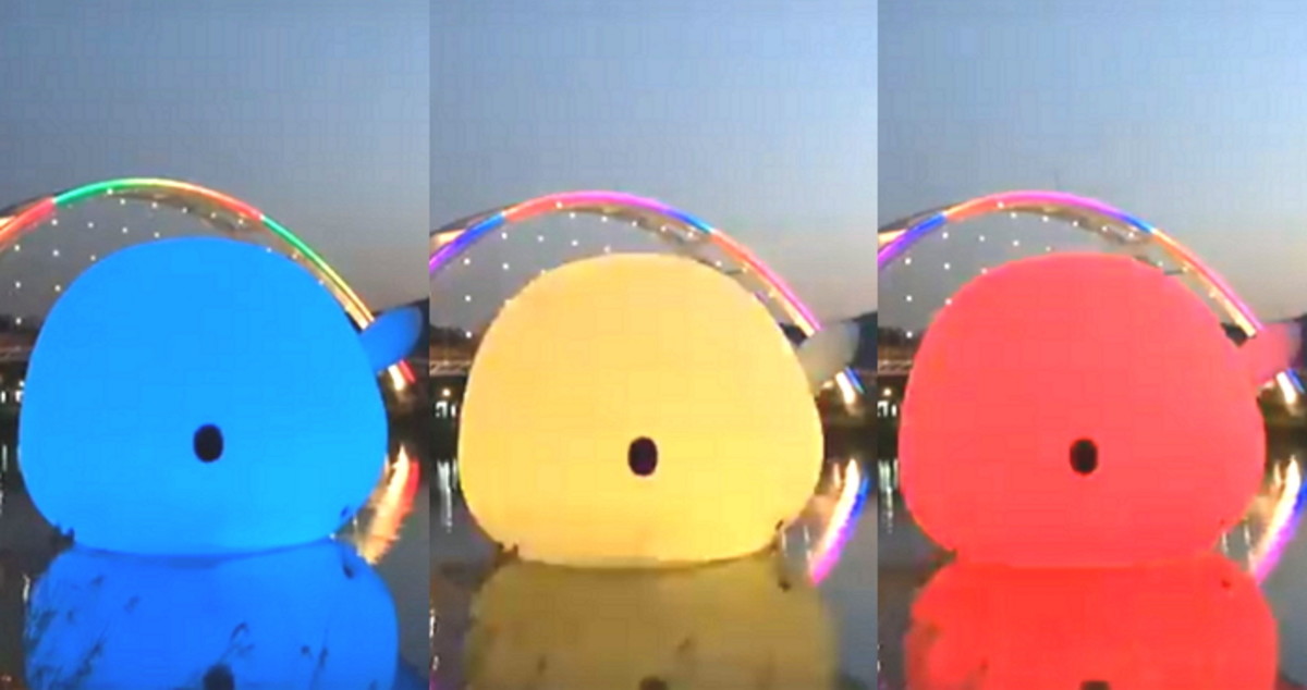 지난 2014년 서울 송파구 석촌호수에서 선보였던 '러버덕'에서 착안돼 만들어진 '러브 웨일'은 고래가 식용 혹은 포획의 대상이 아니라 보호와 공존의 대상이라는 걸 알리기 위해 제작됐다.