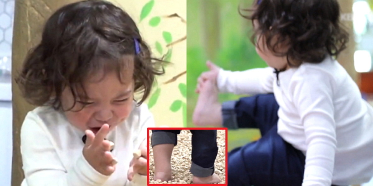 신나게 들어갔던 건후는 이내 편백 나뭇조각들을 밟고 고통에 몸부림을 치고 말았다.