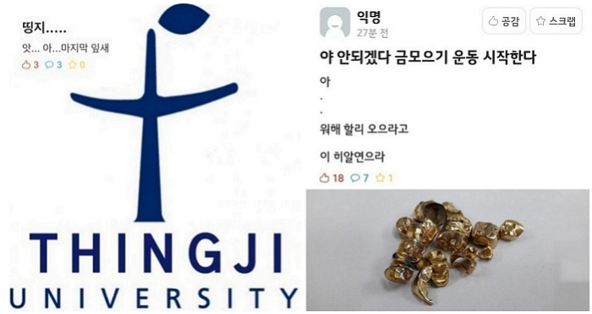 또한 한 학생은 파산 위기에 놓인 학교를 위해 '명지대 금 모으기 운동'을 제안했다.