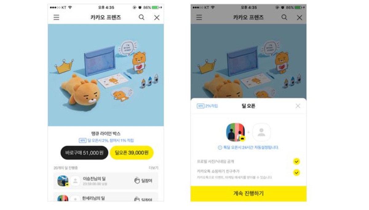 물론, 타 이용자가 만든 딜 상품을 선택·결제해도 톡딜이 성사돼 할인 가격으로 구매가 가능하다.