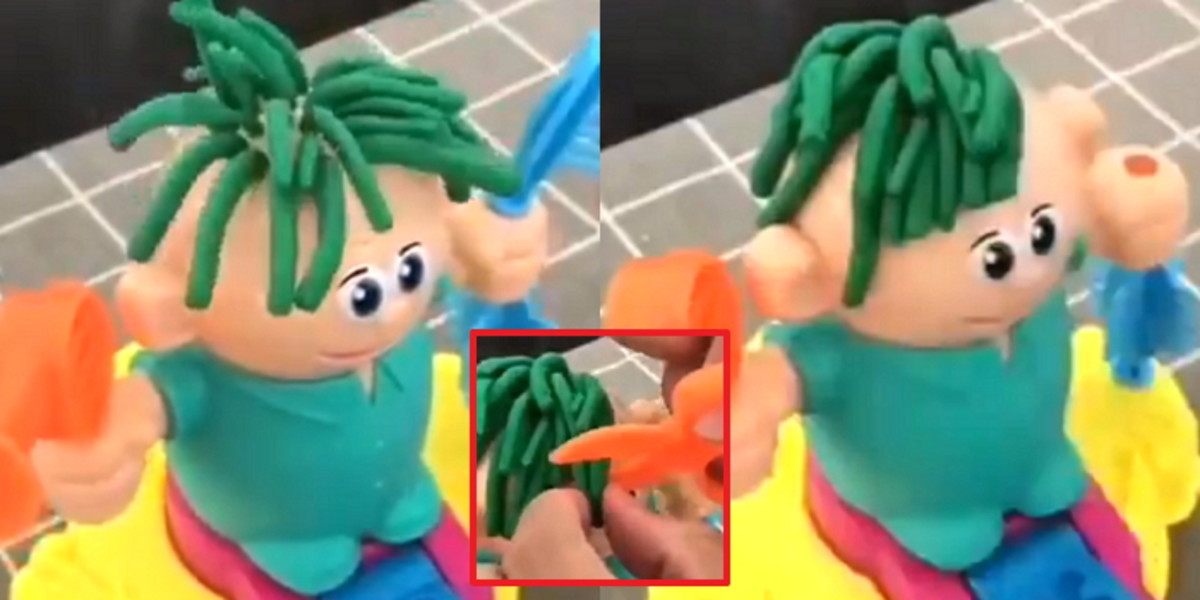 해당 게시글 속에 첨부된 영상에는 색깔 있는 찰흙을 조합해 송송 구멍이 뚫린 인형 머리에 심는 모습이 담겨있다.