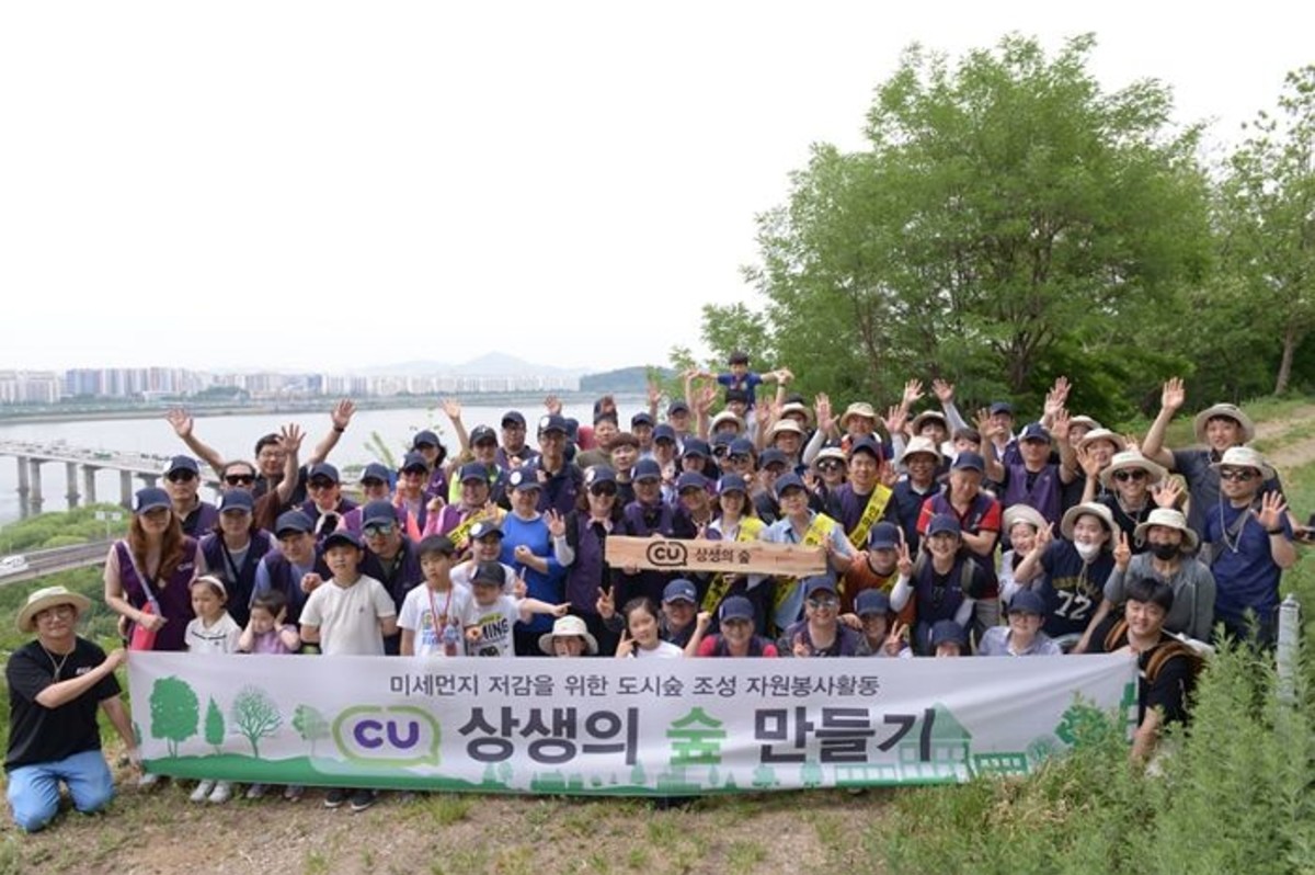 사내 봉사동호회 '이음표'와 가맹점주로 구성된 'CU한마음봉사단' 함께 숲 만들기 봉사 가맹본부·가맹점이 상호 신뢰 공고히 하며, 사회적 문제 해결에도 함께 고민해 나갈 것