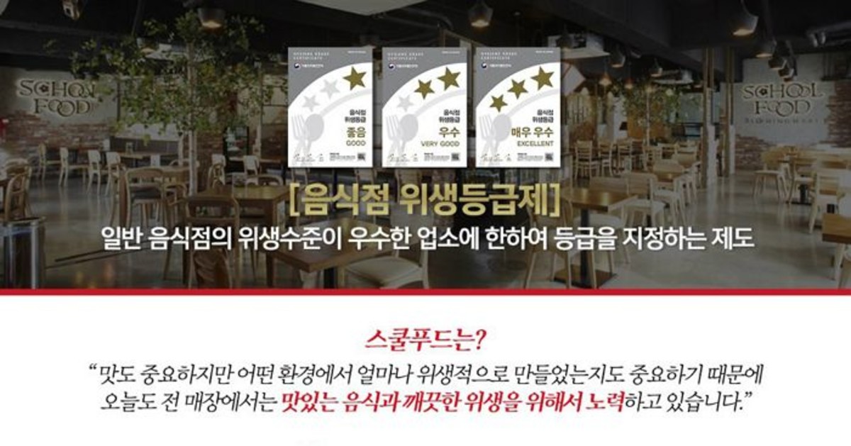 또한 스쿨푸드 및 스쿨푸드 딜리버리를 중심으로 김작가의 이중생활, 분짜라붐 등 SF이노베이션이 운영하고 있는 모든 브랜드 매장의 식품의약안전처(식약처) 위생등급제 인증을 추진 중이다.
