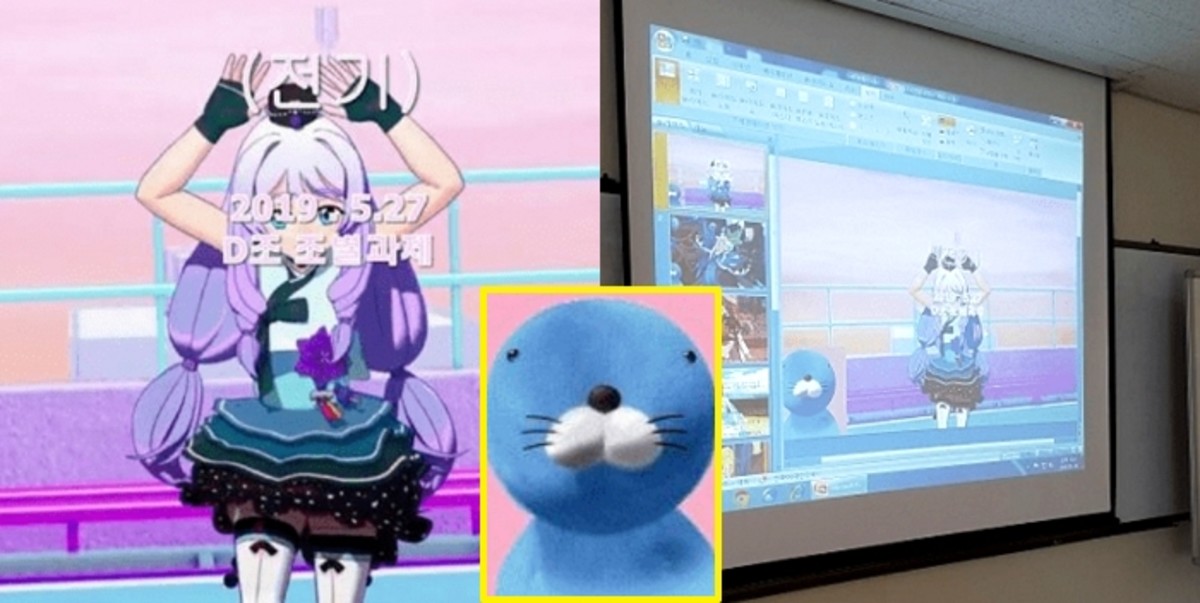 PPT에는 화려한 애니메이션 배경과 읽기조차 어려울 정도로 빼곡히 적힌 글이 담겨 있었다. 보노보노 캐릭터도 잊지않고 넣었다.