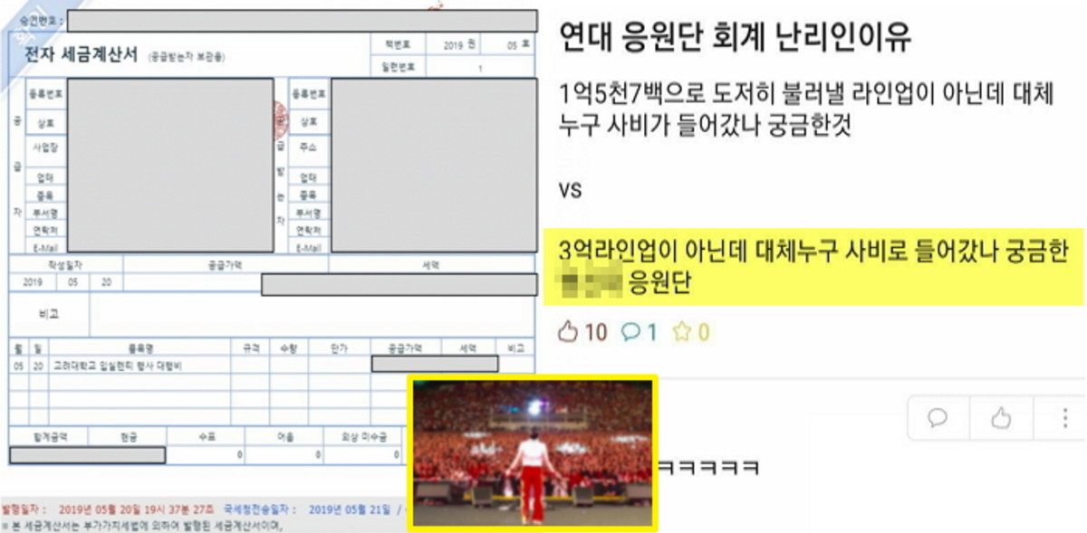논란이 커지자 고려대 응원단은 회계 영수증을 공개했다.