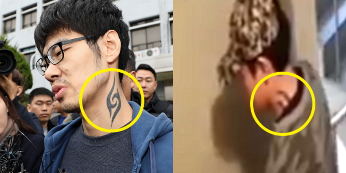 실제 CCTV 속 그의 셔츠 위로는 두 갈래의 검은색 문신이 드러나있다.