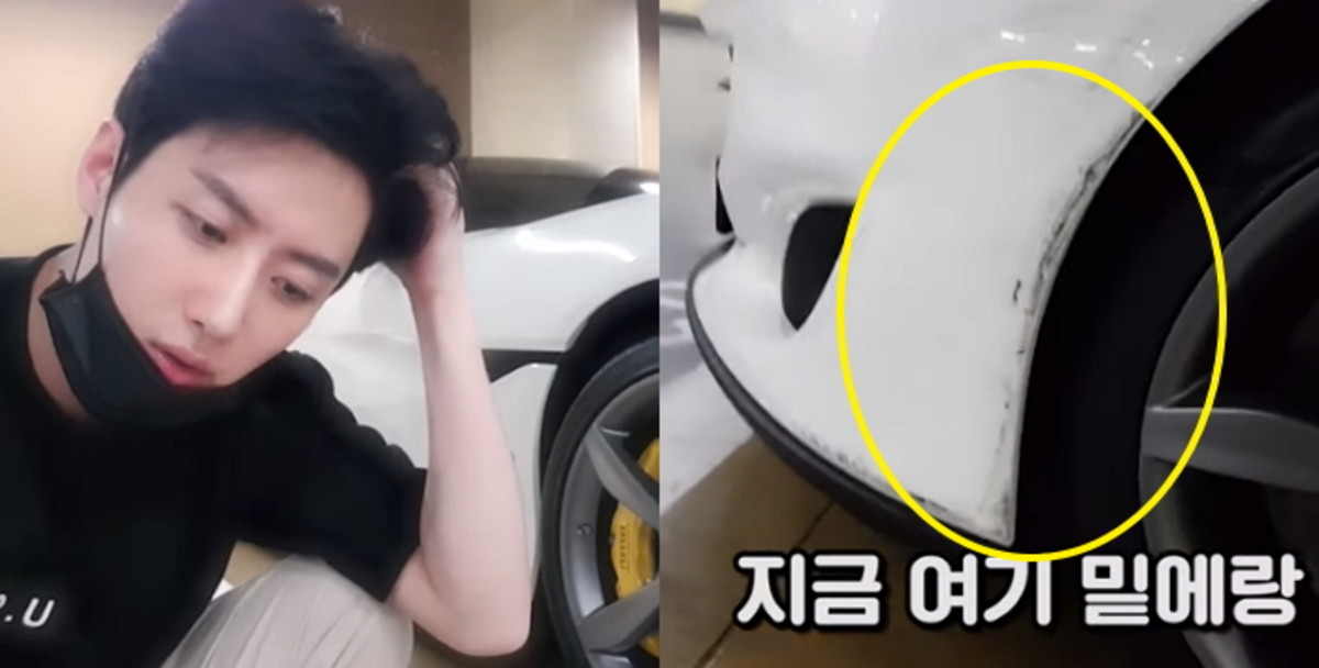 실제로 흰색 페라리 범퍼 왼쪽 부분이 완전히 긁혀 까맣게 보였다. 페라리 수리비는 수백만원에서 천만원대에 달할 것으로 보인다.