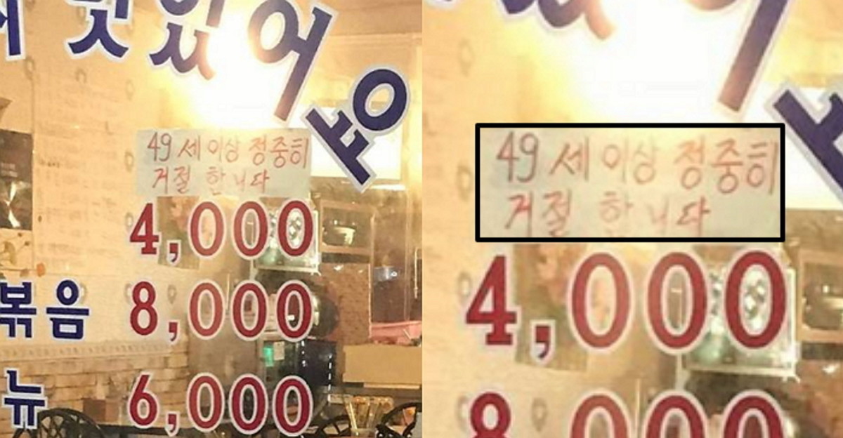 지난 4일 각종 온라인 커뮤니티에는 "49세 이상은 정중히 거절합니다"라는 안내문이 쓰여있는 한 식당의 사진이 올라왔다.