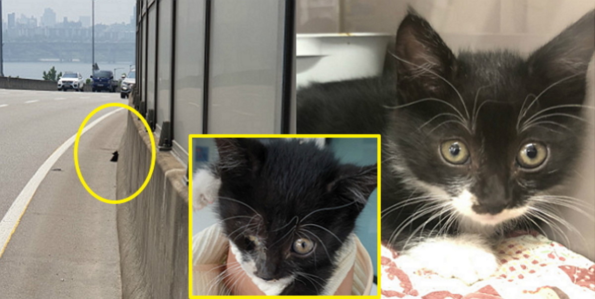 비상등을 켜고 도로 외벽에 바짝 붙어 차 문만 살짝 열고 아기고양이를 집어 들었다.