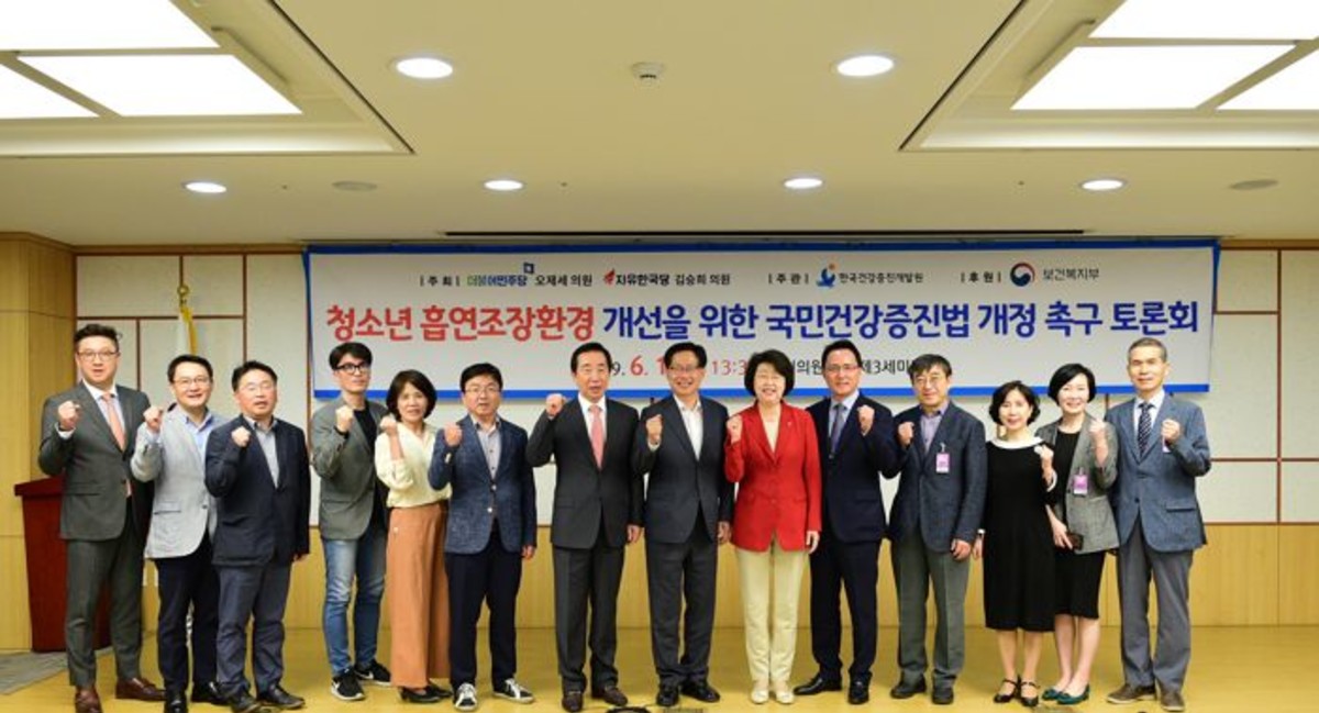 [인사이트] 이유리 기자 = 한국건강증진개발원은 지난 11일 오후 국회의원회관 제3세미나실에서 '청소년 흡연조장환경 개선을 위한 국민건강증진법 개정 촉구 토론회'가 열렸다고 밝혔다.