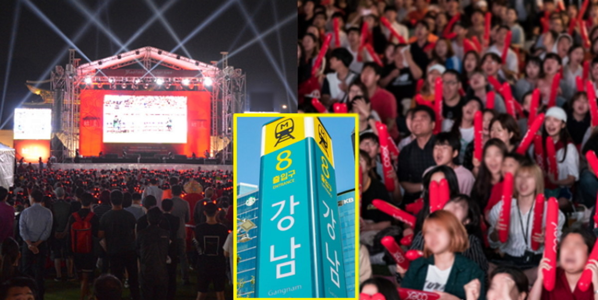 늦은 밤 경기가 열리기 때문에 심야에도 대중교통을 이용하기 쉬운 강남역이 응원 장소로 꼽혔다.