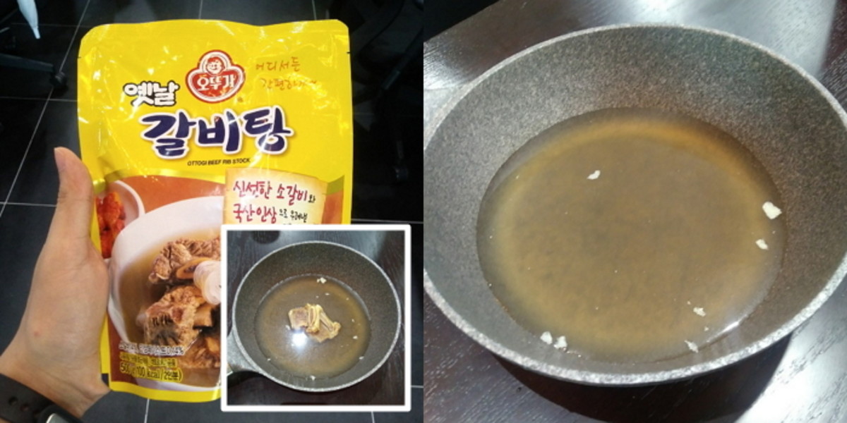 기자는 지난 13일 마트에서 3,800원을 주고 오뚜기 옛날 갈비탕 제품을 구매했다. 그리고 반신반의하며 내용물을 천천히 덜어냈다. 인삼 냄새와 함께 국물이 쏟아져 나왔다. 양이 상당했다.