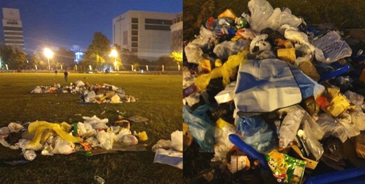 거리 응원이 펼쳐졌던 창원시 창원광장에는 쓰레기가 탑처럼 쌓여있었다. 쓰레기를 모아두기만 하고 그대로 두고 간 것이다.