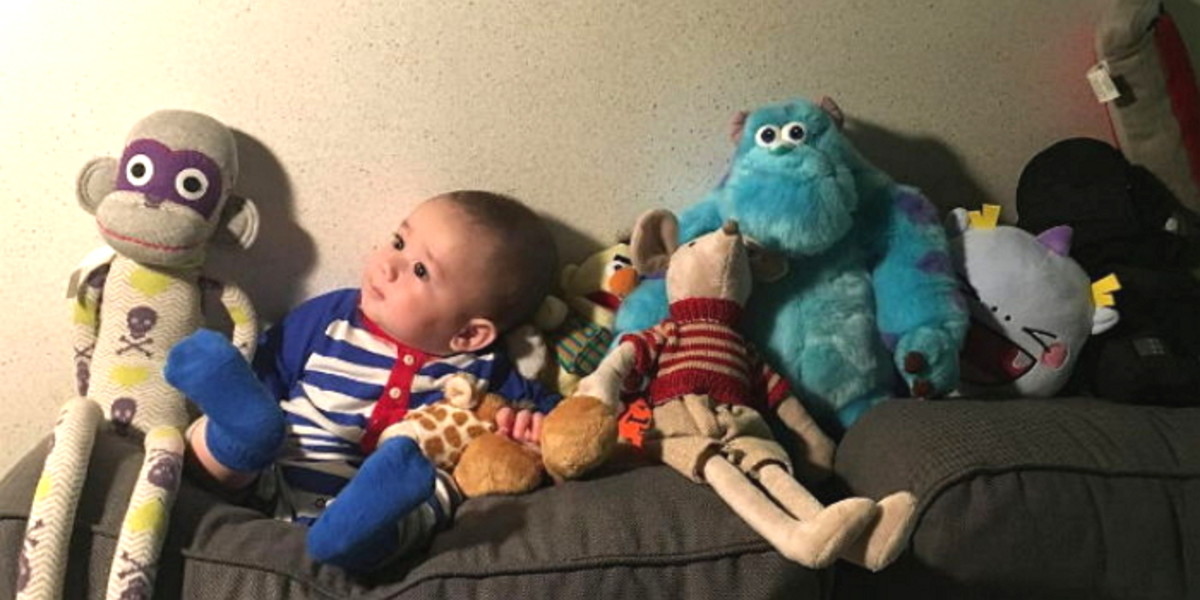 인기 애니메이션 '토이스토리' 속 장난감이라도 된 듯 샘 해밍턴이 장난감 사이에 앉혀 놓으면, 윌리엄은 얌전히 앉아 인형 같은 고운 외모를 뽐냈다.