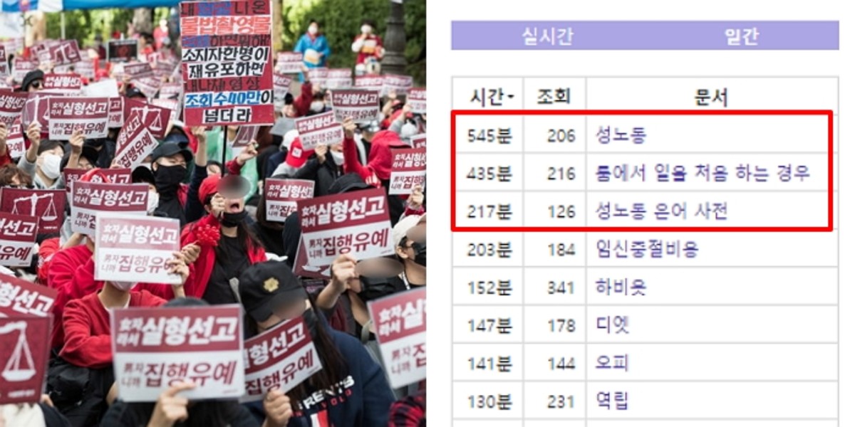 20일 기준 페미위키에서 가장 조회 수가 높은 글은 바로 '성 노동'이었다. 성 노동 이외에도 상위 15위 중 11개 용어가 성매매와 관련된 용어였다.