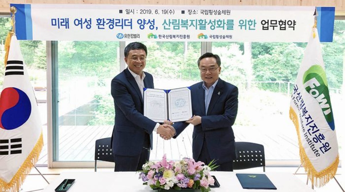 [인사이트] 이하린 기자 = 유한킴벌리와 산림청 한국산림복지진흥원은 지난 19일 횡성군 둔내면 소재 국립횡성 숲체원에서 '미래 여성환경리더 양성'을 위한 업무 협약을 체결했다고 밝혔다.