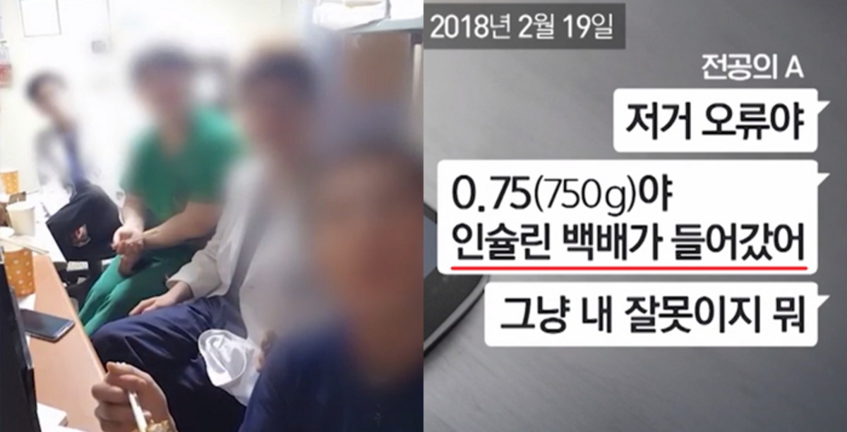 심지어 한 전공의는 지난해 2월 체중이 0.75kg인 미숙아를 '75kg'로 착각하고 혈당을 조절하는 인슐린을 적정량의 100배나 투여했다. 미숙아는 생후 일주일밖에 되지 않은 상태였다.