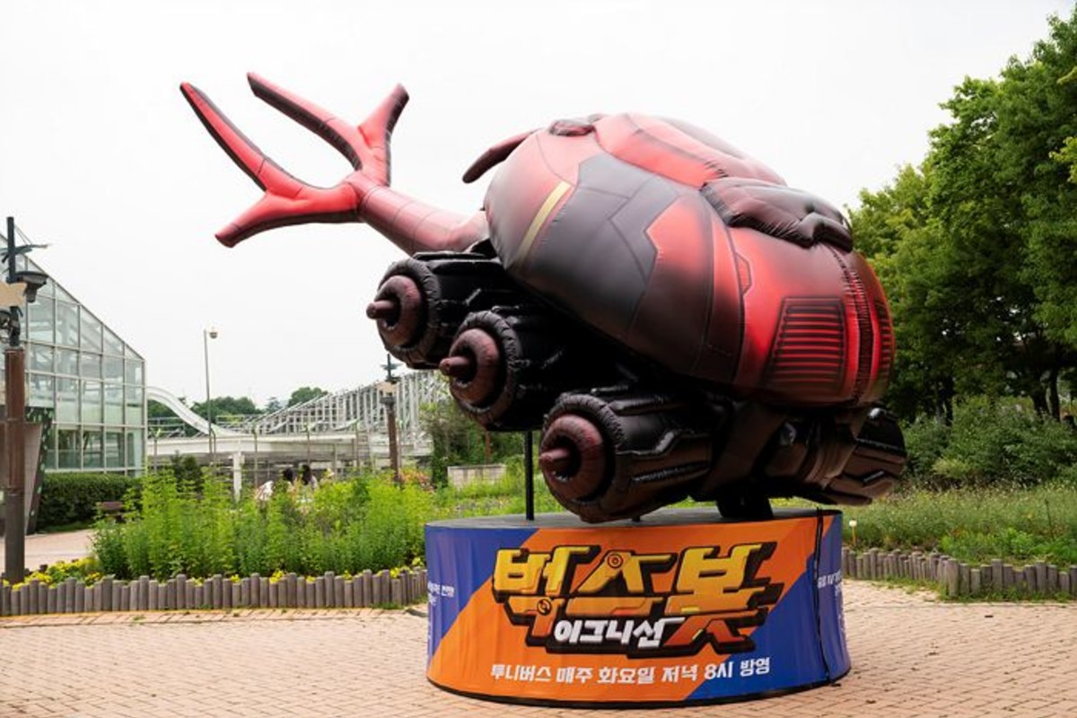 자이언트 벅스봇은 왕 장수풍뎅이를 모티브로 한 애니메이션 속 벅스봇 '카로스'를 재현했다.