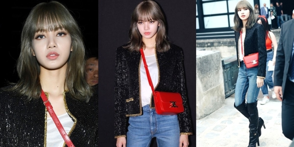 이날 리사는 고급스러운 트위드 재킷에 청바지를 입고 등장했다.