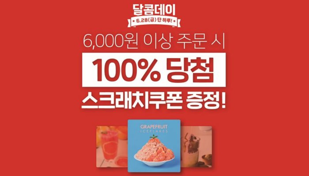 오는 6월 28일 단 하루 동안 전국 달콤커피 매장(특수 매장 제외)에서는 6,000원 이상 구매한 고객에 한해 '100% 당첨 스크래치 쿠폰'이 선착순 제공된다.