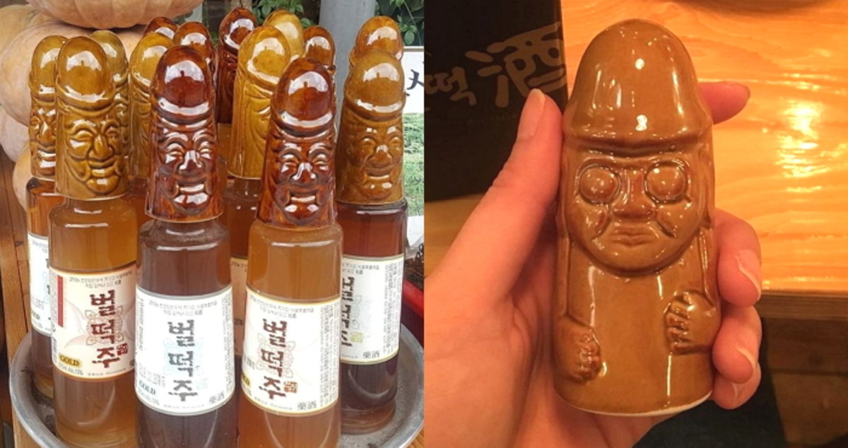 사진 속에는 뚜껑 부분에 돌하르방 얼굴이 새겨진 독특한 비주얼의 술병이 담겨있다.