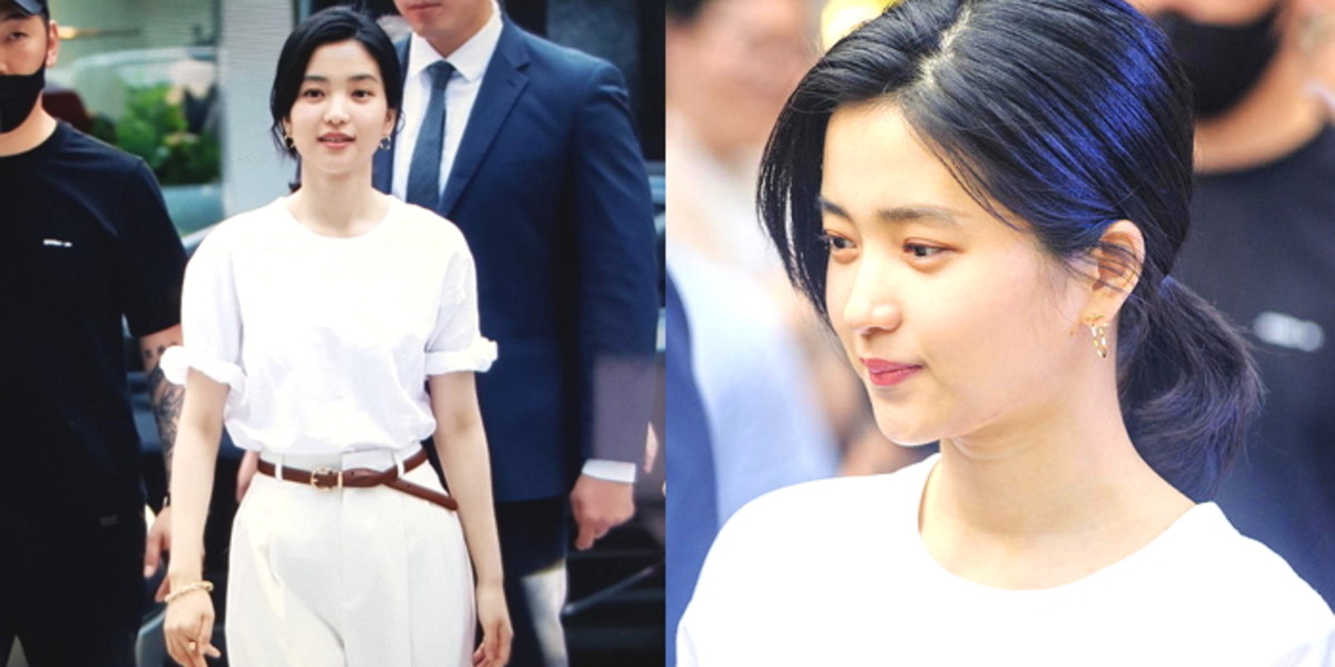 클라우드 맥주의 모델인 김태리는 이날 박시한 흰색 티에 통이 큰 흰색 바지를 입고 나타났다.