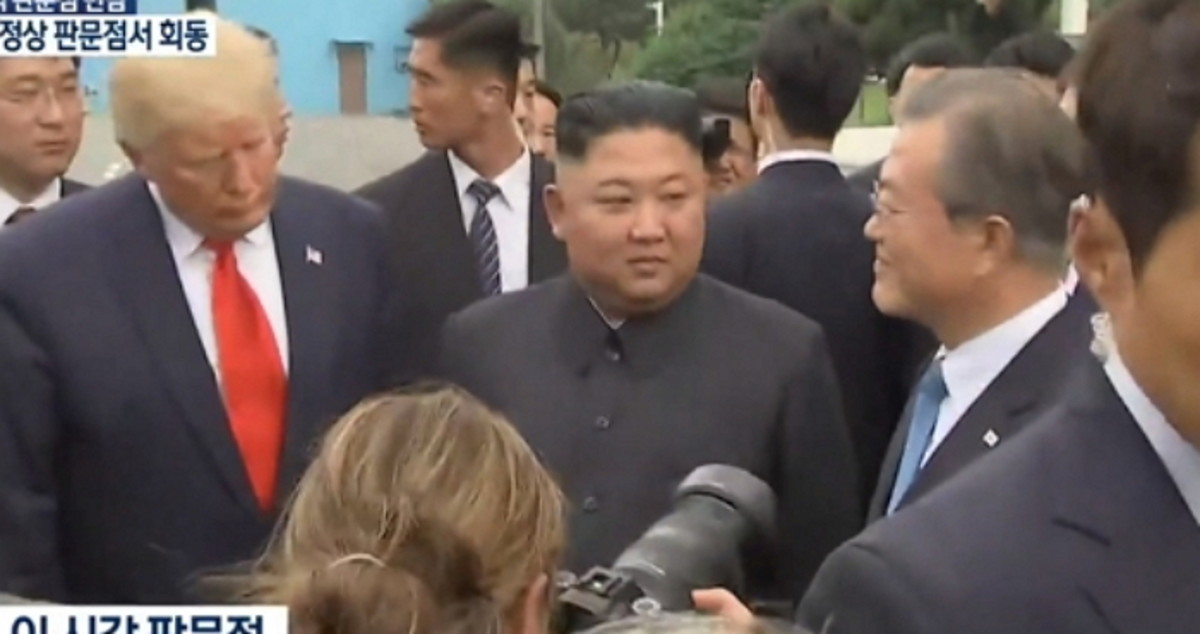 트럼프 대통령이 먼저 군사분계선 위에서 김 위원장과 만나 북측 땅을 잠시 밟았다.