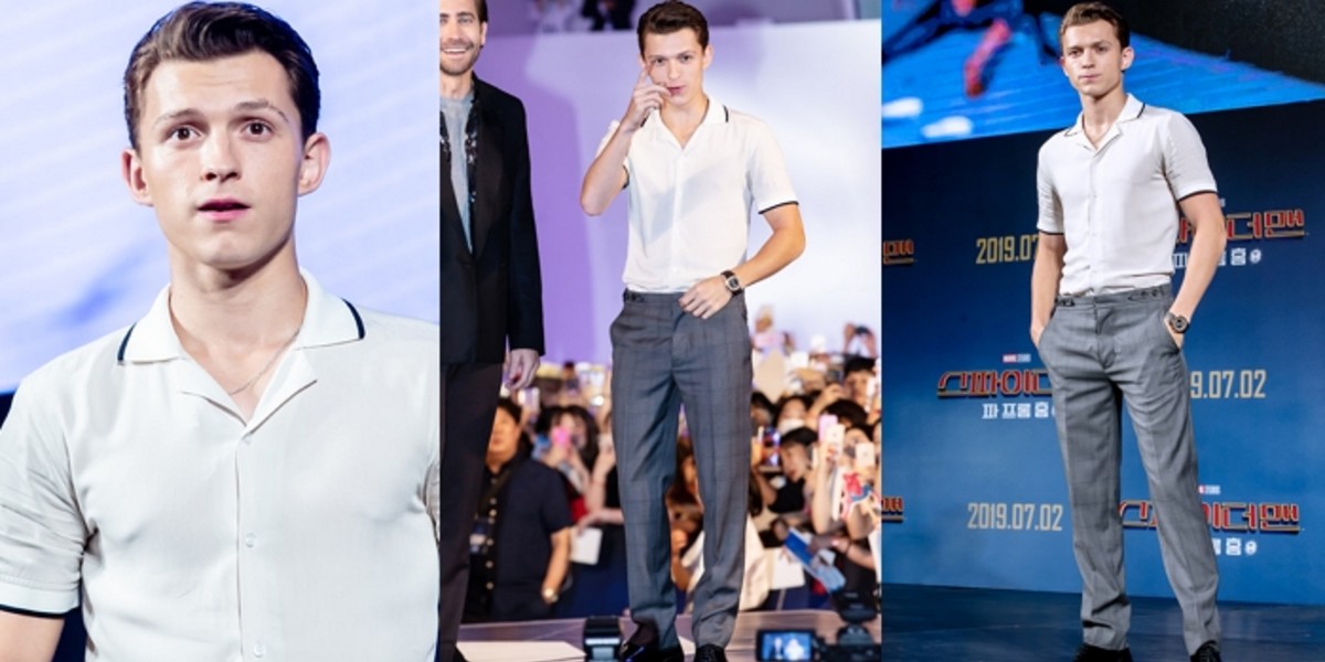 톰 홀랜드는 이날 흰 셔츠에 체크무늬 바지를 입고 등장해 지금까지와는 또 다른 댄디한 분위기를 한껏 발산했다.