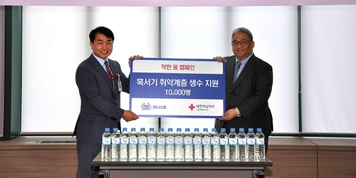 이번 생수 전달은 대한적십자사에서 여름철 취약계층을 위한 '착한 물 캠페인'의 일환으로 한국미니스톱은 생수 '내 몸에 70% 500mL' 제품 1만개를 지원했다.