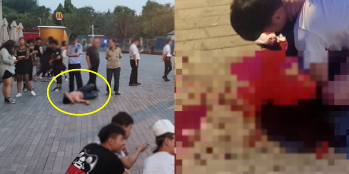 피가 목에서 뿜어져 나왔고 그 누구도 선뜻 남성을 구하려 나서지 않았다.
