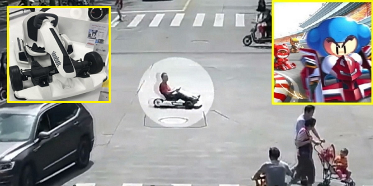남성이 운전하는 모습은 CCTV에 적나라하게 찍혀 있었다. 영상을 보면 남성은 작은 전동 카트에 배찌 혹은 다오처럼 몸을 싣고 있다.