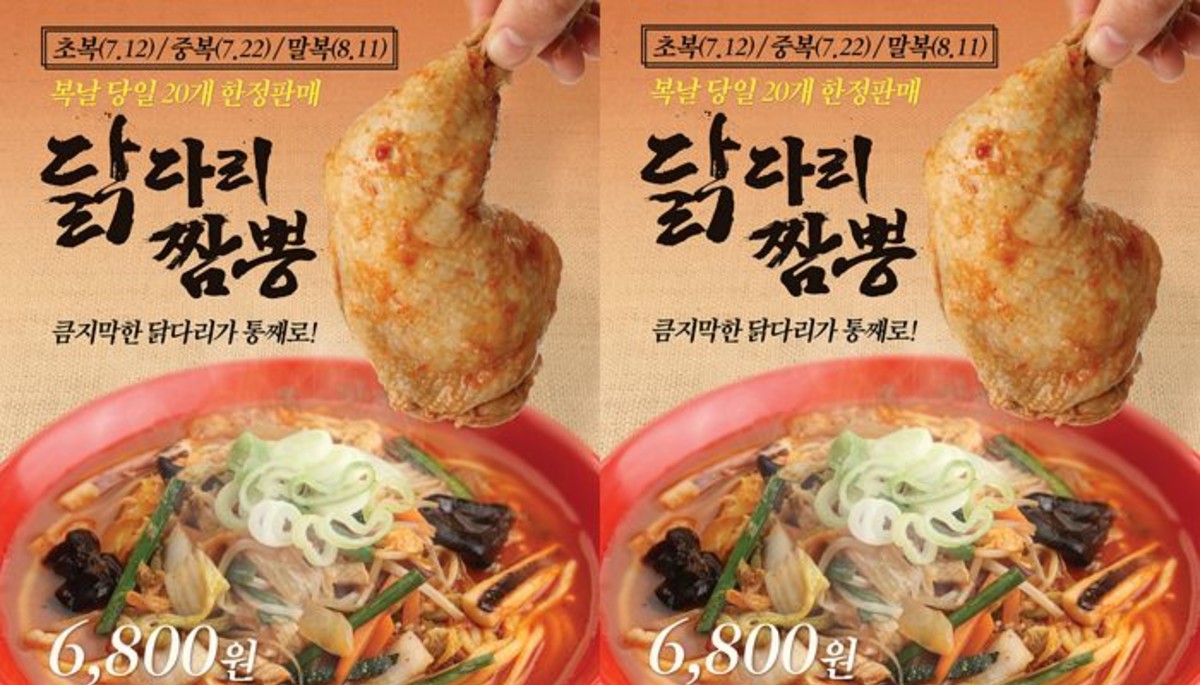 삼복 당일에 판매되는 닭다리짬뽕은 전국 홍콩반점0410 34개 매장에서 오전 11시부터 하루 20개 한정수량으로 만나볼 수 있으며, 정가는 6천 800원이다. 포장은 불가하다.