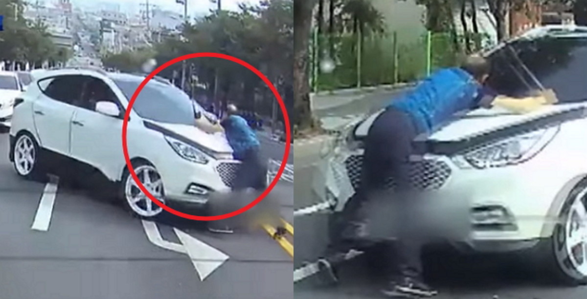 B씨는 필사적으로 와이퍼를 붙잡으며 버텼고, 그렇게 2km 이상 끌려가다 시내버스의 도움으로 무사히 도로로 내려올 수 있었다.