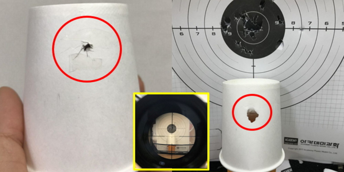 이후 스코프를 통해 과녁을 조준한 A씨는 수 십 발의 탄을 과녁과 모기에게 쏟아부었다.