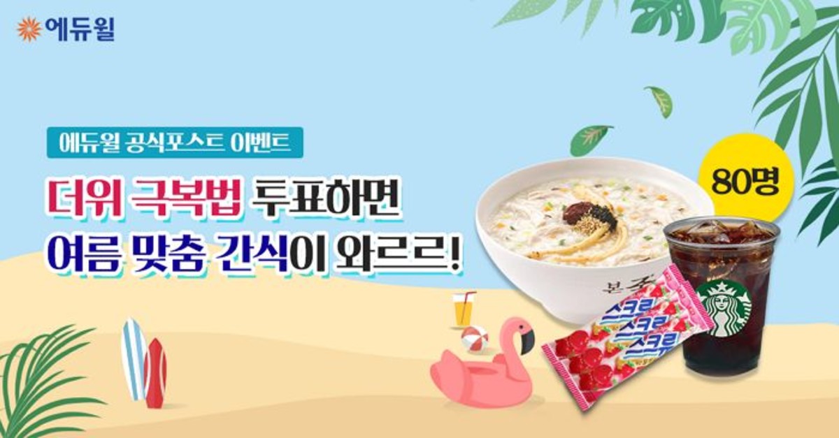 [인사이트] 전준강 기자 = 에듀윌은 네이버 공식 포스트에서 여름 휴가 시즌을 맞이해 '더위 극복법' 투표 이벤트를 진행한다고 16일 밝혔다.