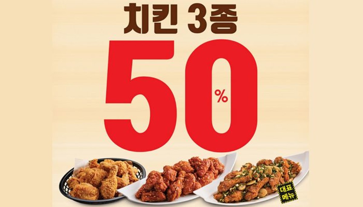 이번 이벤트는 1만 7천원의 '고추마늘치킨'이 8천 5백원에 판매되며, 1만 5천 원의 '양념마늘치킨'은 7천 5백원에, 1만 4천원의 '후라이드치킨'은 7천원에 판매된다.