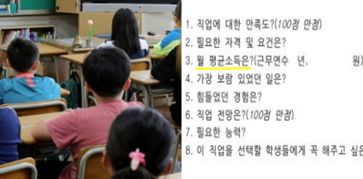 지난해 경기도 모 학교에서는 선생님이 학생들에게 "부모님의 월평균 소득과 보수, 만족도를 알아오라"는 내용의 과제를 내 논란이 되기도 했다.
