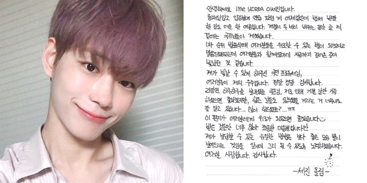 [인사이트] 이원석 기자 = Mnet '프로듀스 X 101' 이세진이 자필 편지로 팬들에게 감사 인사를 전했다.