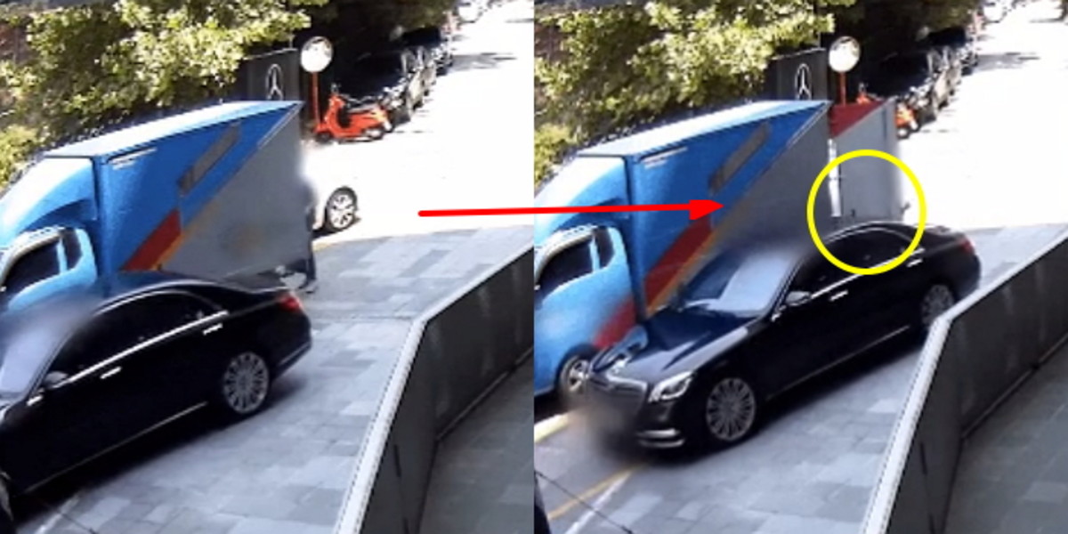생각지도 못한 절묘한 타이밍이었다. 택배기사와 벤츠 차주, 그 누구도 예상하지 못한 순간의 충돌이었다.
