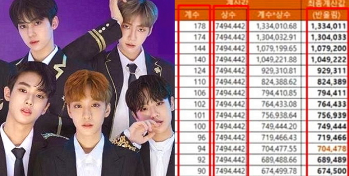 이들은 파이널 생방송 문자투표 득표수를 표기한 표를 근거로 1위부터 20위까지 연습생들의 문자 득표수가 7484.442의 배수로 특정 숫자 배열이 연이어 나타난다며 의구심을 품었다.