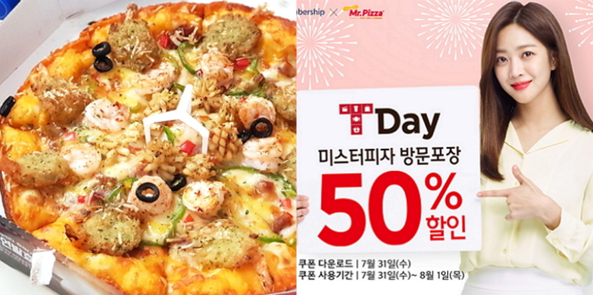 30일 MP그룹의 미스터피자는 SKT 이용고객을 대상으로 50% 할인 쿠폰을 증정하는 '7월 티데이(T-DAY) 프로모션'을 진행한다고 밝혔다.